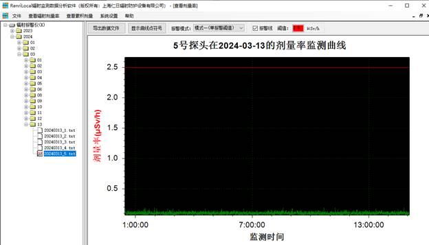 6、數(shù)據(jù)分析:免費(fèi)提供功能強(qiáng)大的RenLocal輻射監(jiān)測數(shù)據(jù)分析軟件,可通過曲線和棒狀圖的形式分析歷史劑量率和累積劑量數(shù)據(jù)以及實(shí)時查詢報警數(shù)據(jù)與統(tǒng)計分析等