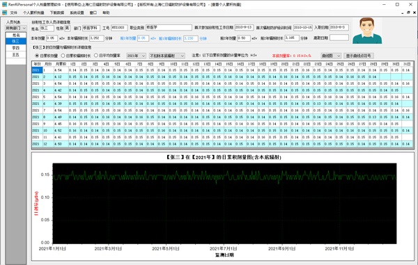 11、管理軟件:可選配強大的RenRiPersonal個人劑量管理軟件,軟件可計算日累積、月累積、年累積、輻照時長、日平均劑量率、扣除或不扣除本底輻射,瞬間顯示86400條/天的劑量率,以圖譜或文字的方式展現數據;可為特定用戶提供定制開發或二次開發。