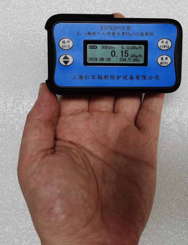 REN200B型X、γ輻射個人劑量當量HP(10)監測儀(簡稱:個人劑量報警儀)內置高量程蓋格計數管為探測器,主要用來監測各種放射性工作場所的X、γ以及硬β射線的輻射,具有較寬的測量范圍。能顯示工作場所的劑量當量率和累積劑量,更換電池時,日期及累積數據能永久保存?蛇x配RenRiPersonal個人劑量管理軟件,該軟件可存儲多個人的歷史數據,能記錄日累積、月累積、年累積、輻照時長、計算平均劑量率、扣除或不扣除本底輻射,且以文字和圖譜的方式展現數據。廣泛應用于核電站、加速器、鋼鐵、化工、同位素應用、工業X、γ無損探傷、放射醫療、鈷源治療、γ輻照、放射性實驗室、核設施周圍環境監測等領域中的工作人員進行個人安全防護監測及放射性提示。